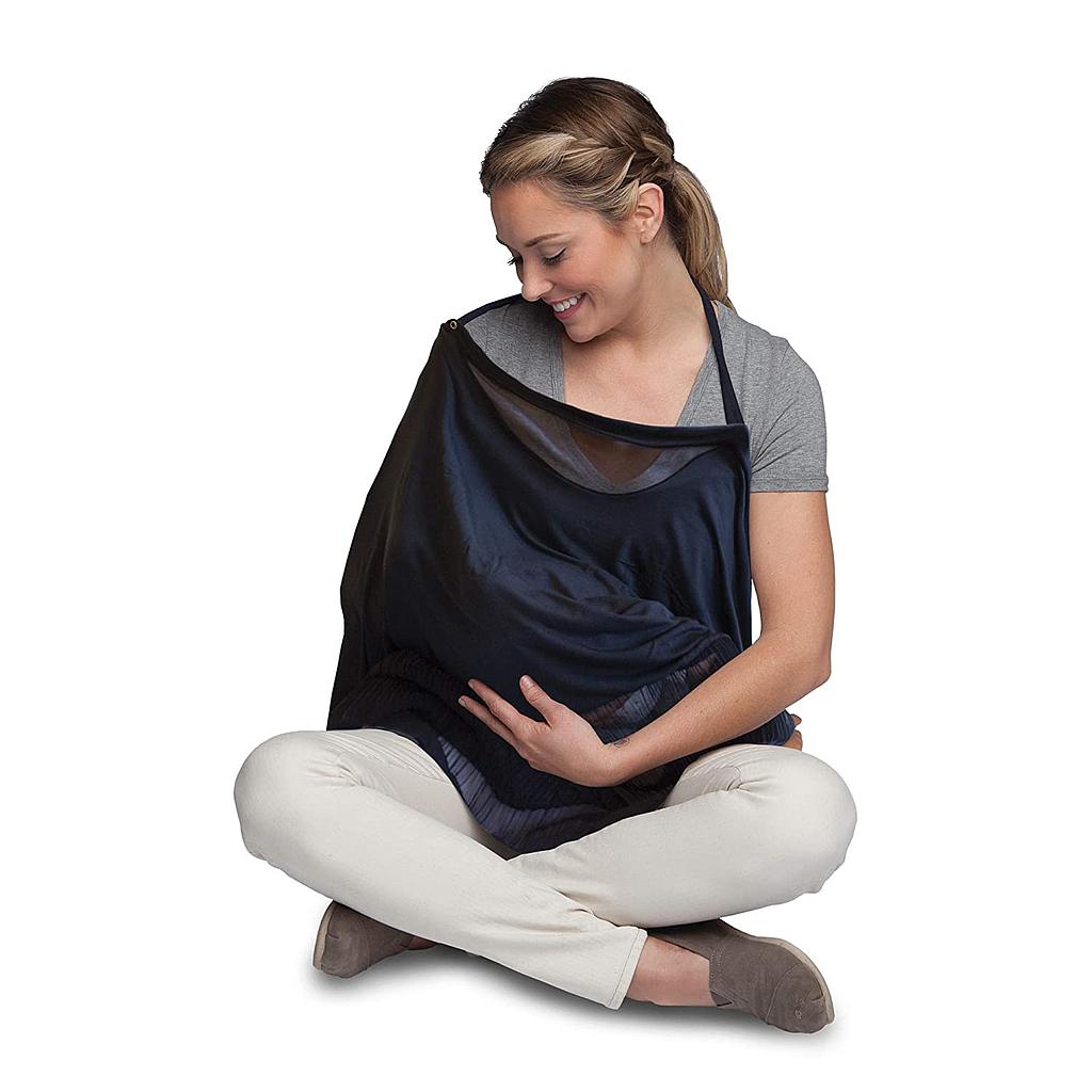Manta de lactancia negra, ligera y transpirable, ideal para brindar privacidad y comodidad durante la lactancia en cualquier lugar. Compacta y fácil de llevar.