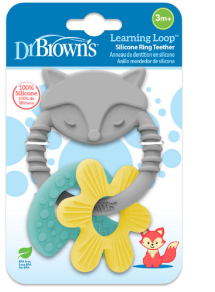 Mordedor con anillo de silicona Zorro Dr. Browns, ideal para dentición. Para edades de 3 meses+.
