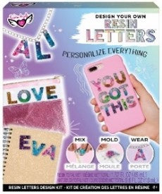Kit para crear dijes de letras de resina, ideal para manualidades. Para edades de 6+.