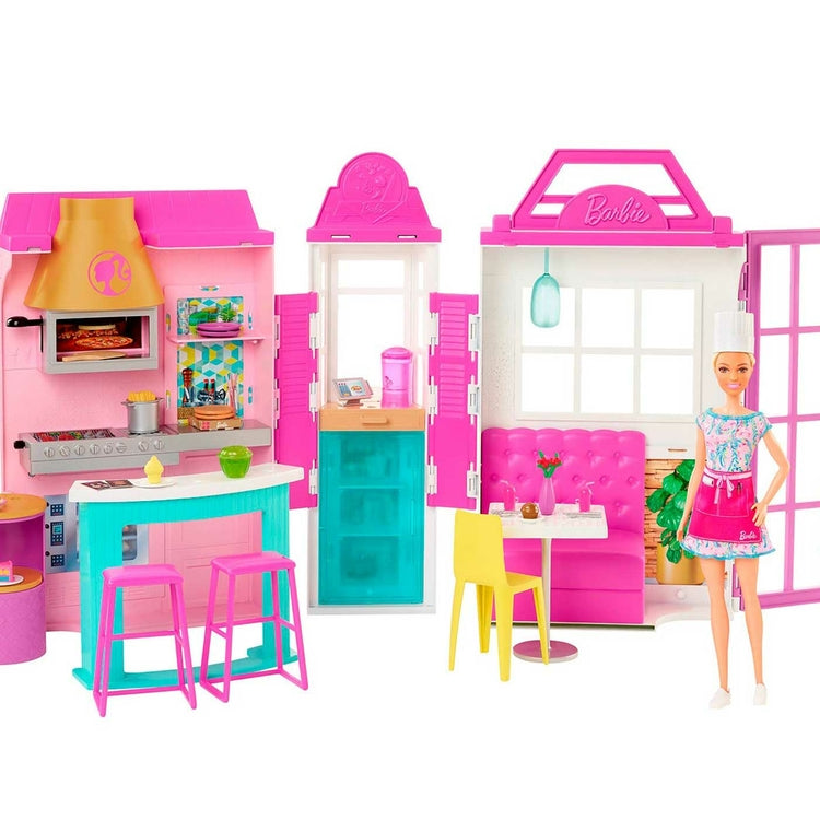 Restaurante con muñeca Barbie, ideal para juegos de rol y creatividad. Para edades de 3+.