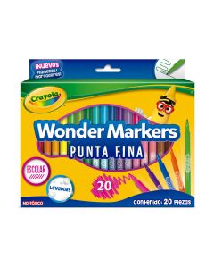 Set de 20 marcadores Wonder punta fina, perfectos para proyectos artísticos. Para edades de 3+.