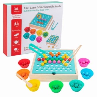 Juego de memoria 4 en 1 de madera, ideal para desarrollo cognitivo. Para edades de 4+.