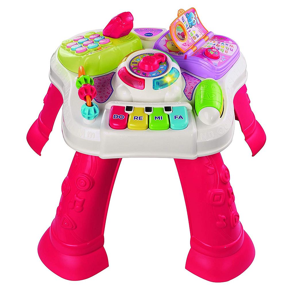 Mesita Parlanchina rosa de V-Tech, ideal para aprendizaje y juegos. Para edades de 1 a 3 años.