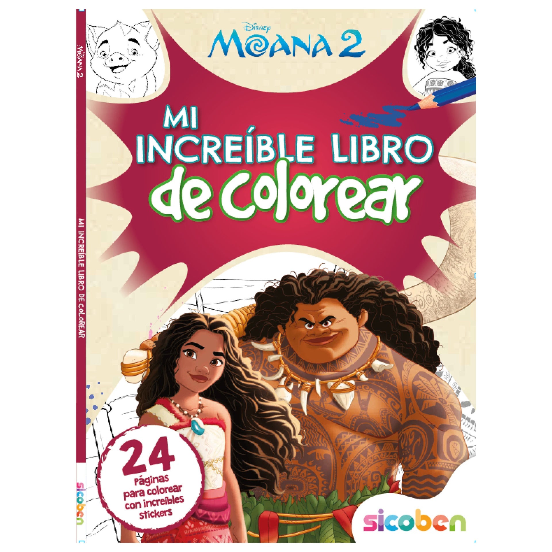 Libro de colorear Disney Moana 2, ideal para diversión y creatividad. Para edades de 3+.