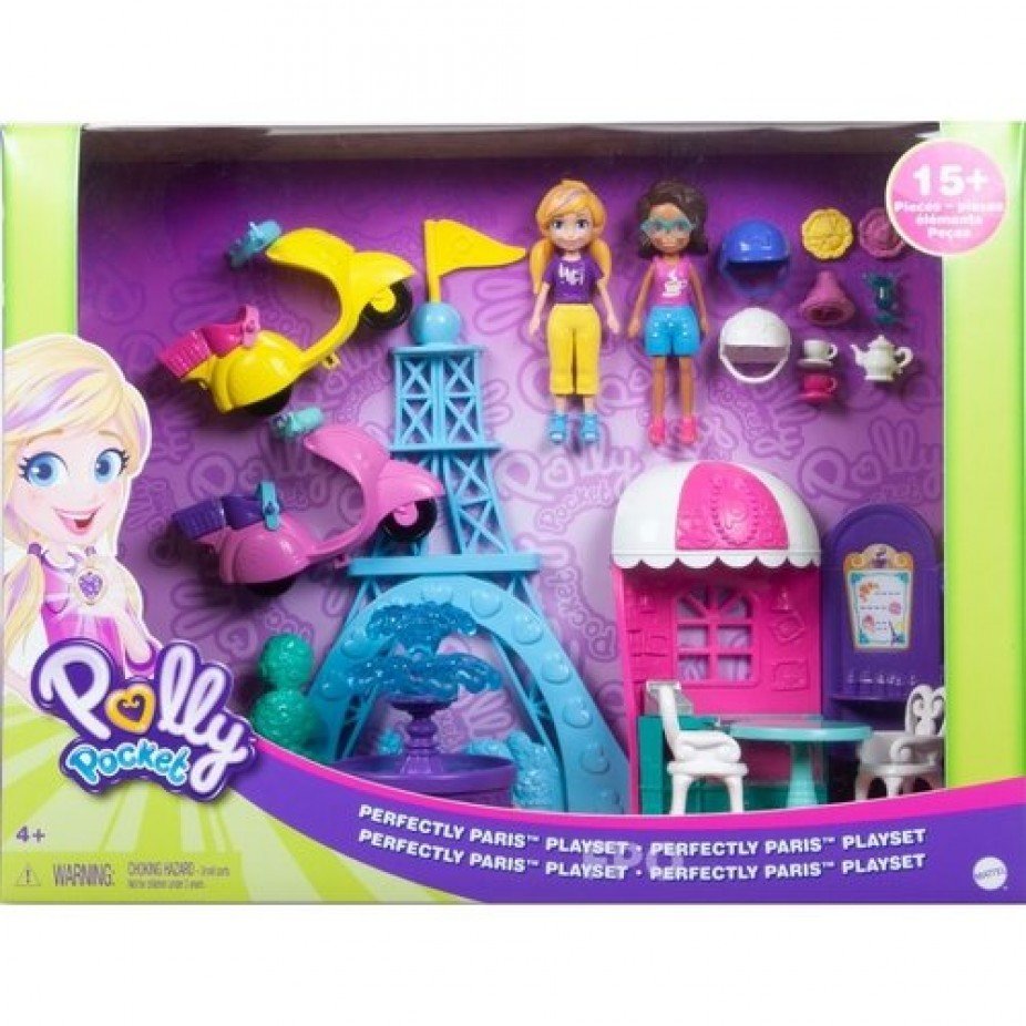 Set de Aventura en París Polly Pocket, ideal para juegos imaginativos. Para edades de 4+.