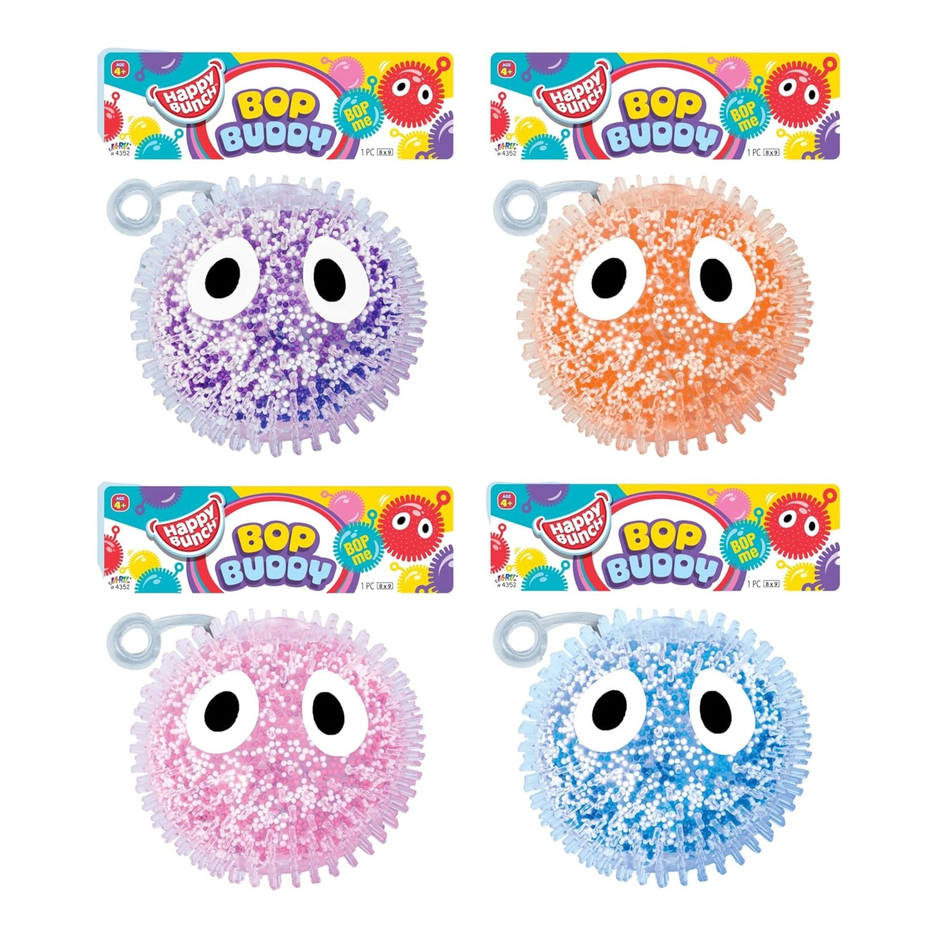Pelota elástica esponjosa antiestrés con brillo, ideal para juegos recreativos. Para edades de 4+.