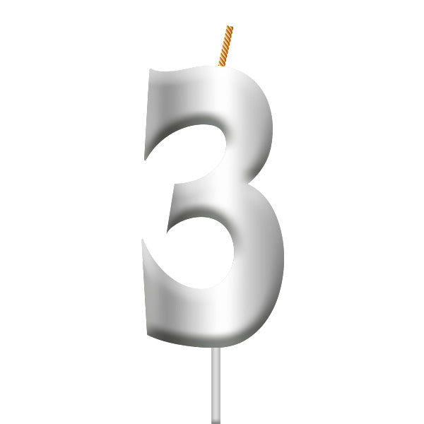 Vela plateada número 3, ideal para decoración de pasteles. Para decoración de eventos.