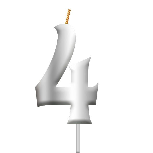 Vela plateada número 4, ideal para decoración de pasteles. Para decoración de eventos.