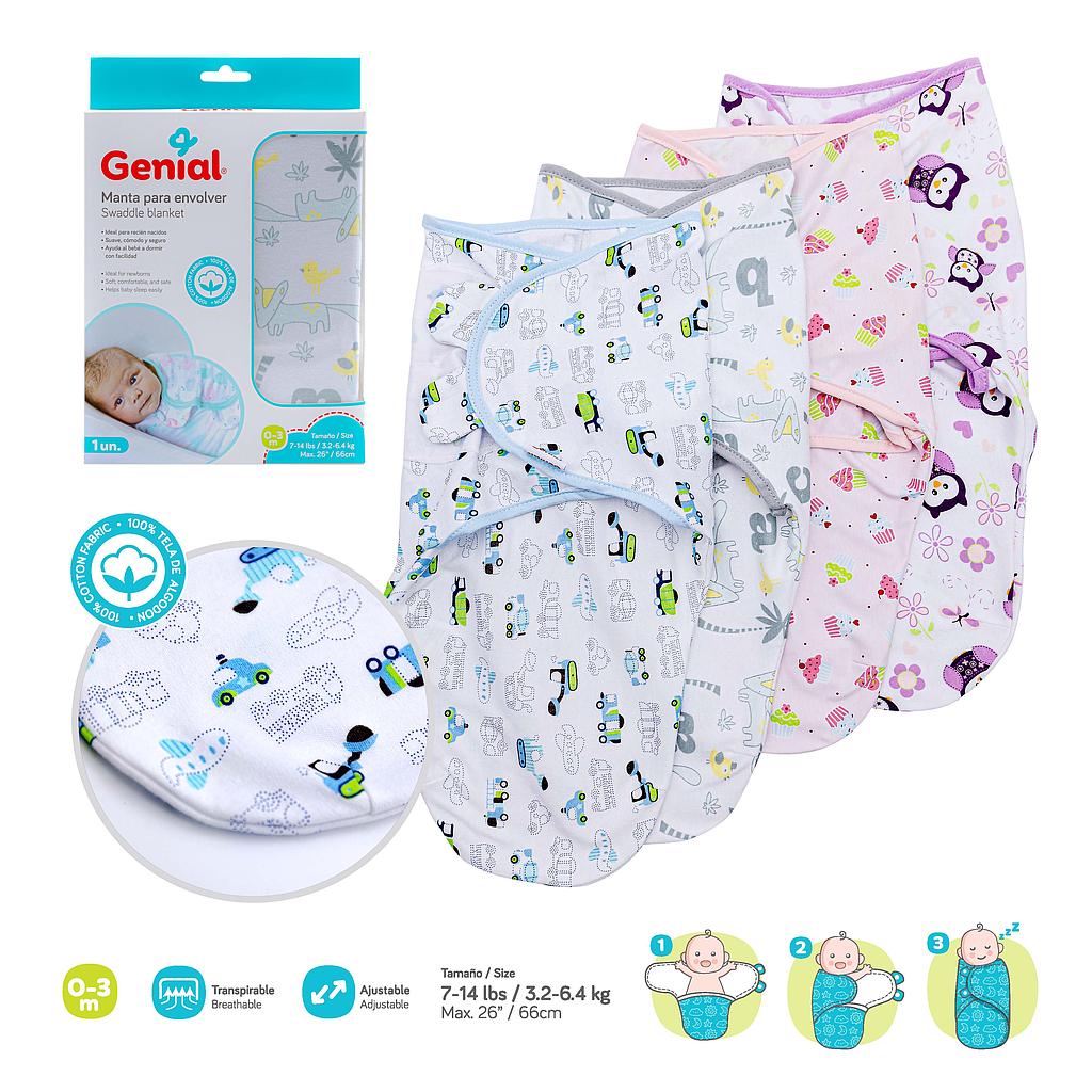 Manta para envolver bebé, ideal para consuelo y descanso. Para edades de 0 a 3 años.