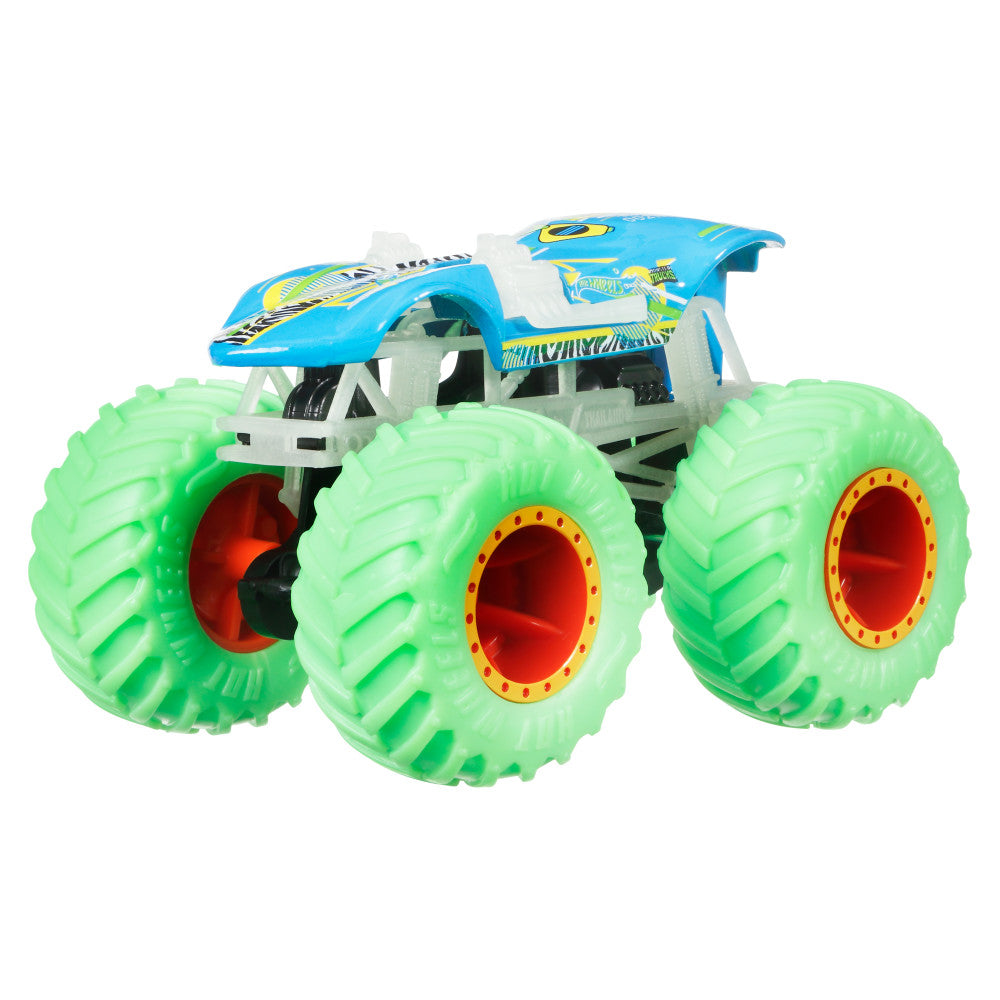 Monster Trucks Glow Hot Wheels 1:64 surtidos, ideal para juegos y coleccionismo. Para edades de 3+.