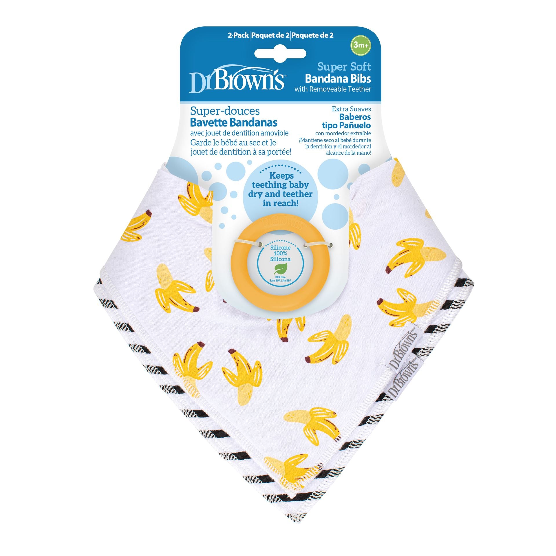 Set de 2 baberos bandana con mordedor de Dr. Browns, ideal para bebés. Para edades of 0 a 3 años.