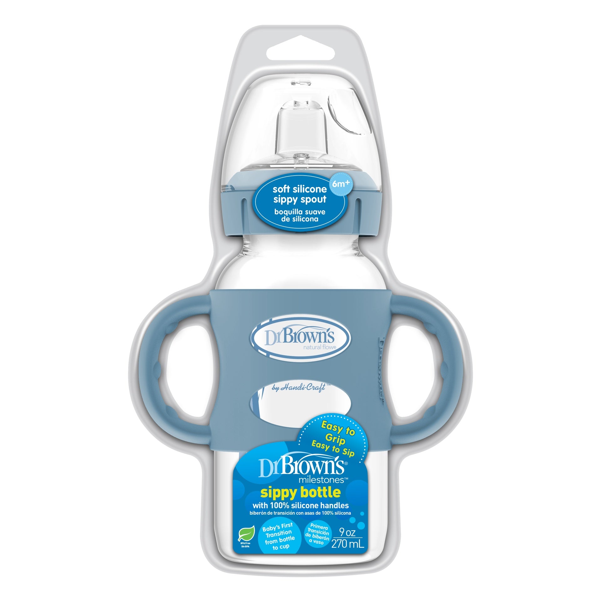 Biberón con asas azul 9 oz Dr. Browns, ideal para alimentación. Para edades of 0 a 3 años.