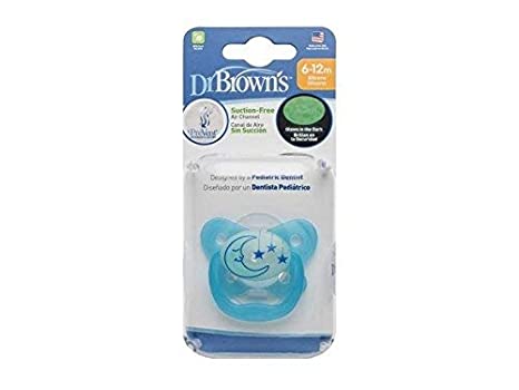 Chupeta Prevent brilla nivel 2 azul Dr. Browns, ideal para bebés 6-12 meses.