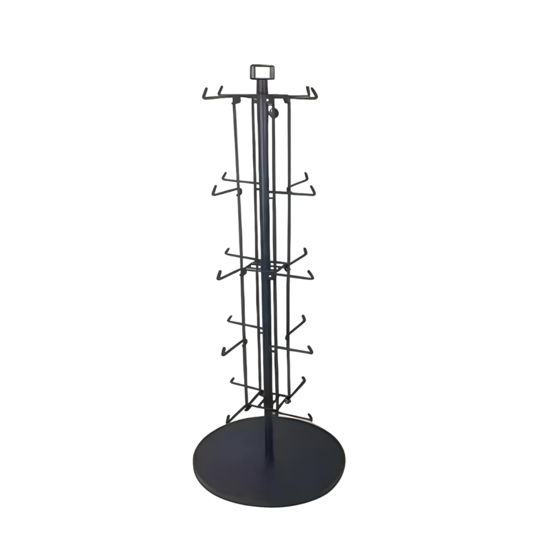 Exhibidor tubular para colgantes, ideal para organización de accesorios. Para uso general.
