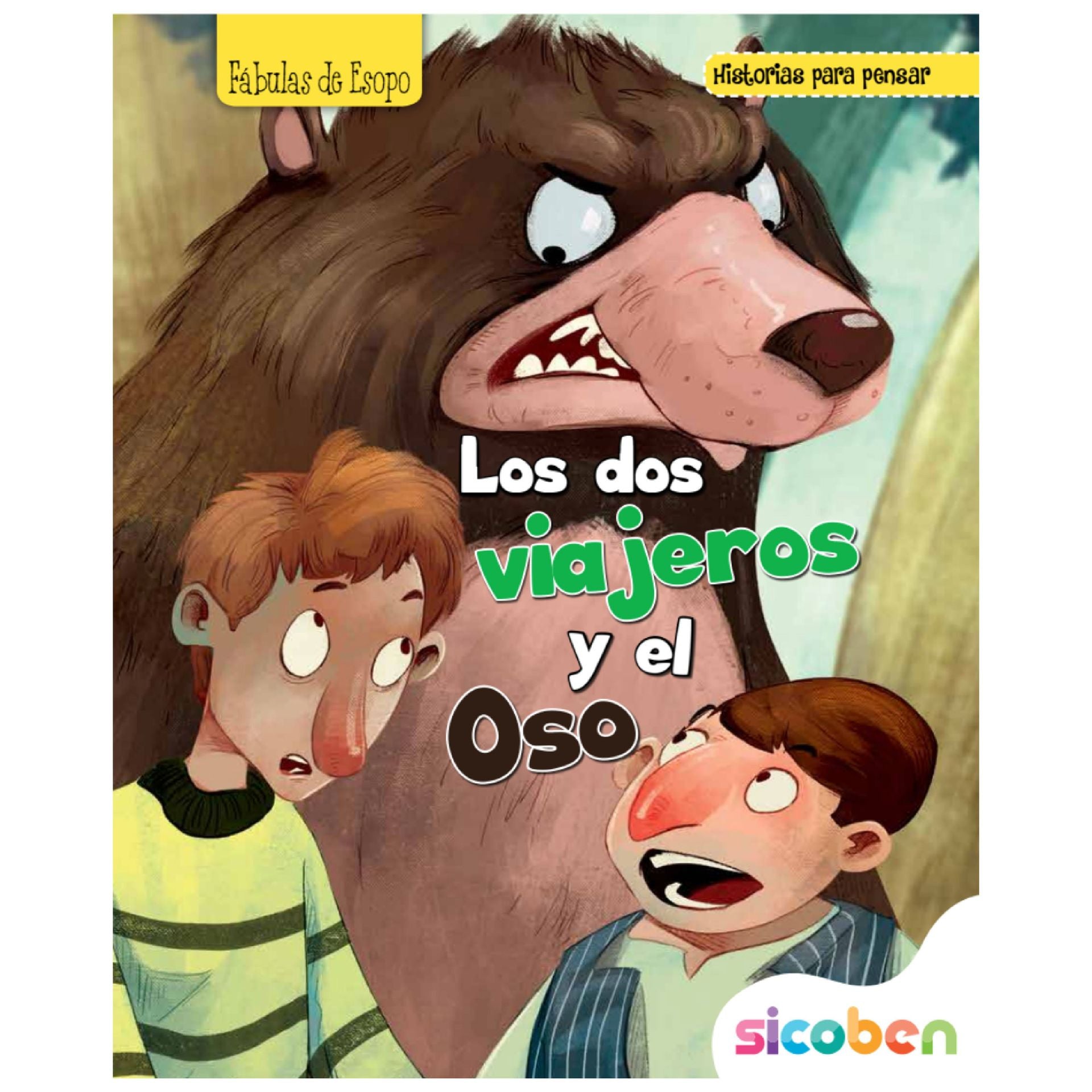 Libro Fábulas de Esopo Los Dos Viajeros y el Oso, ideal para lectura. Para edades de 4+.