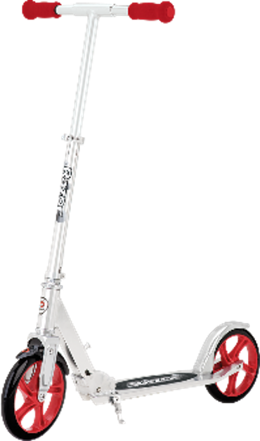 Monopatín A5 de lujo en rojo brillante, con estructura robusta y diseño moderno. Perfecto para paseos y trucos, para edades de 5+.