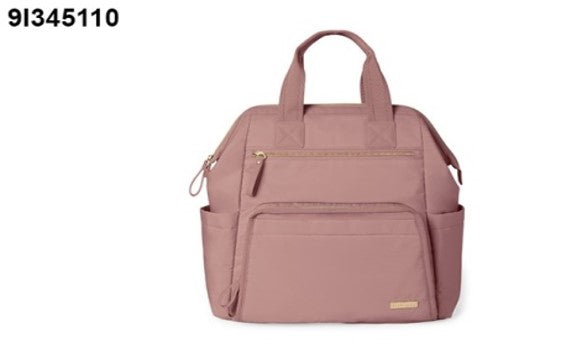 Pañalera rosada de Skip Hop, ideal para transportar artículos de bebé. Para edades de 0 a 3 años.