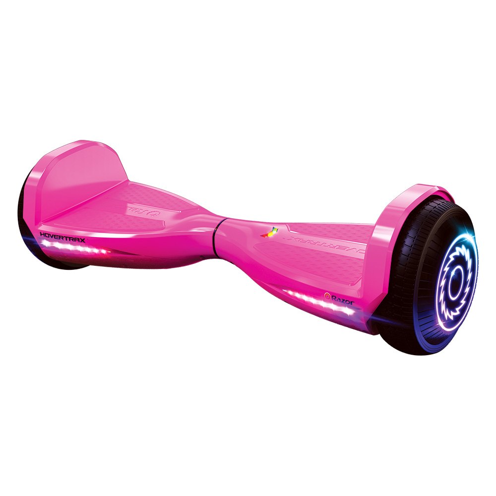 Patineta eléctrica Hovertrax Prizma rosada con luces LED, perfecta para niños aventureros. Para edades de 8+.