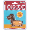 Pelota antiestrés con forma de hot dog, ideal para juegos y relajación. Para edades de 4+.