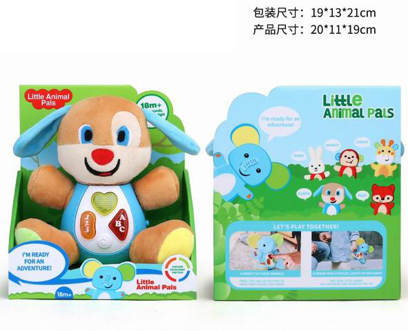 Perro de 20 cm con luz y música, ideal para juegos y consuelo. Para edades de 2+.