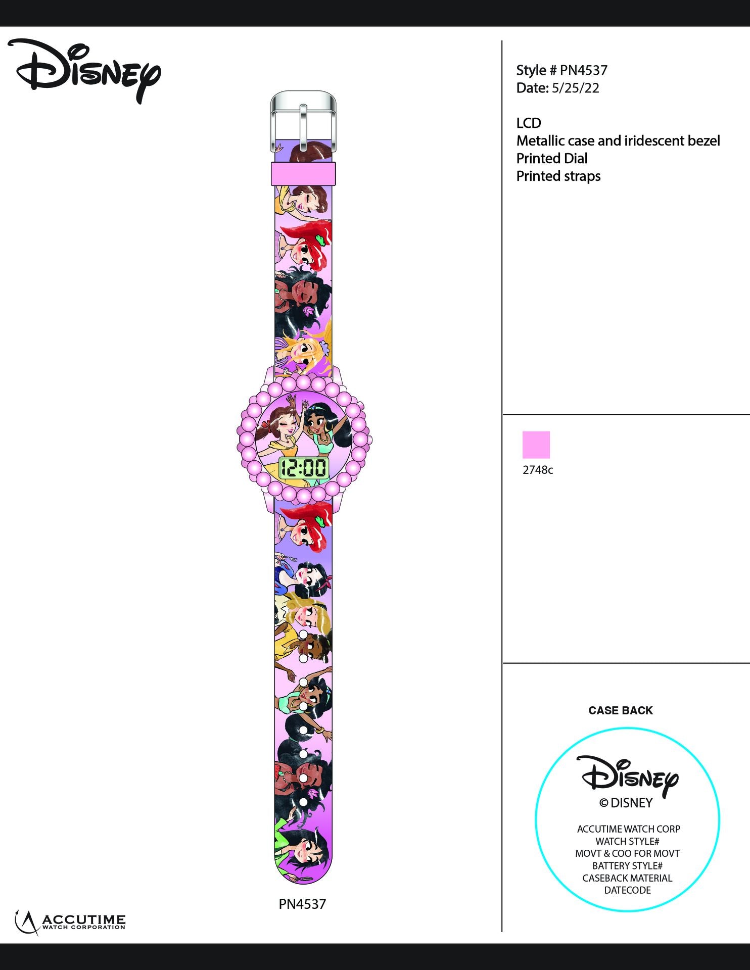 Reloj LCD Princesas rosado/metal, ideal para fans y uso diario. Para edades de 6+.