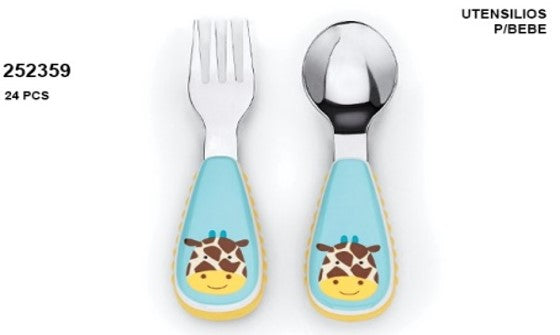 Set de cubiertos con diseño de jirafa de la línea Zoo, ideal para niños pequeños. Para edades de 12 meses+.
