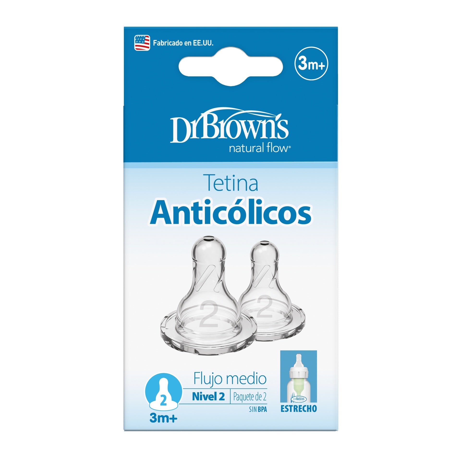Set de 2 tetinas estrechas nivel 2, diseñadas para alimentación de bebés en crecimiento. Compatible con biberones Dr. Brown’s.