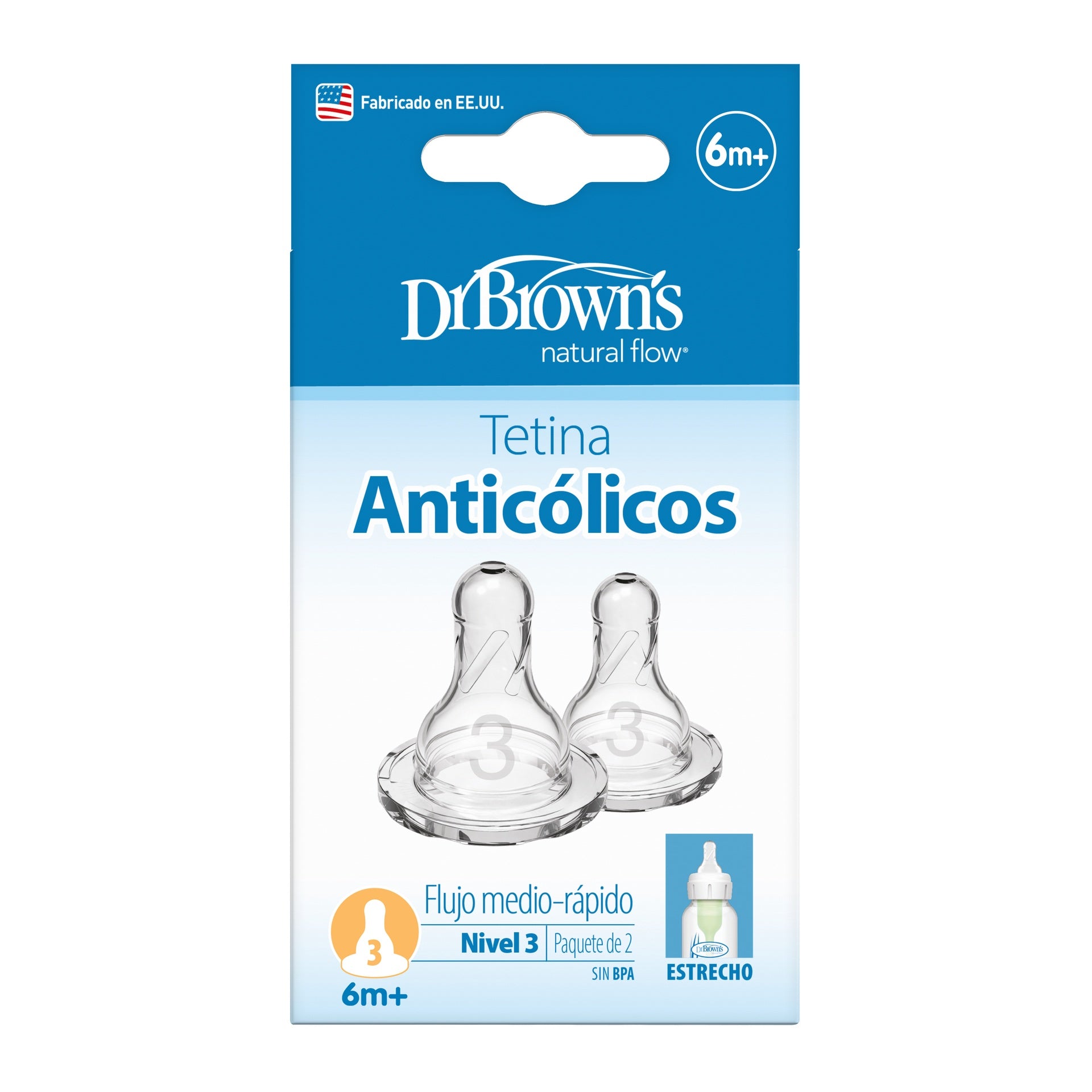 Set de 2 tetinas estrechas nivel 3, diseñadas para bebés en desarrollo. Compatible con biberones Dr. Brown’s.