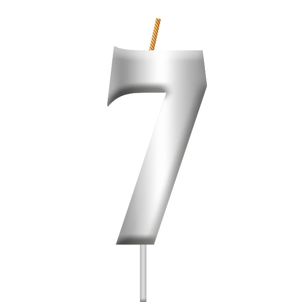 Vela plateada número 7, ideal para decoración de pasteles. Para decoración de eventos.