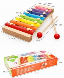 Xilófono de madera, ideal para juegos musicales y creatividad. Para edades de 3+.